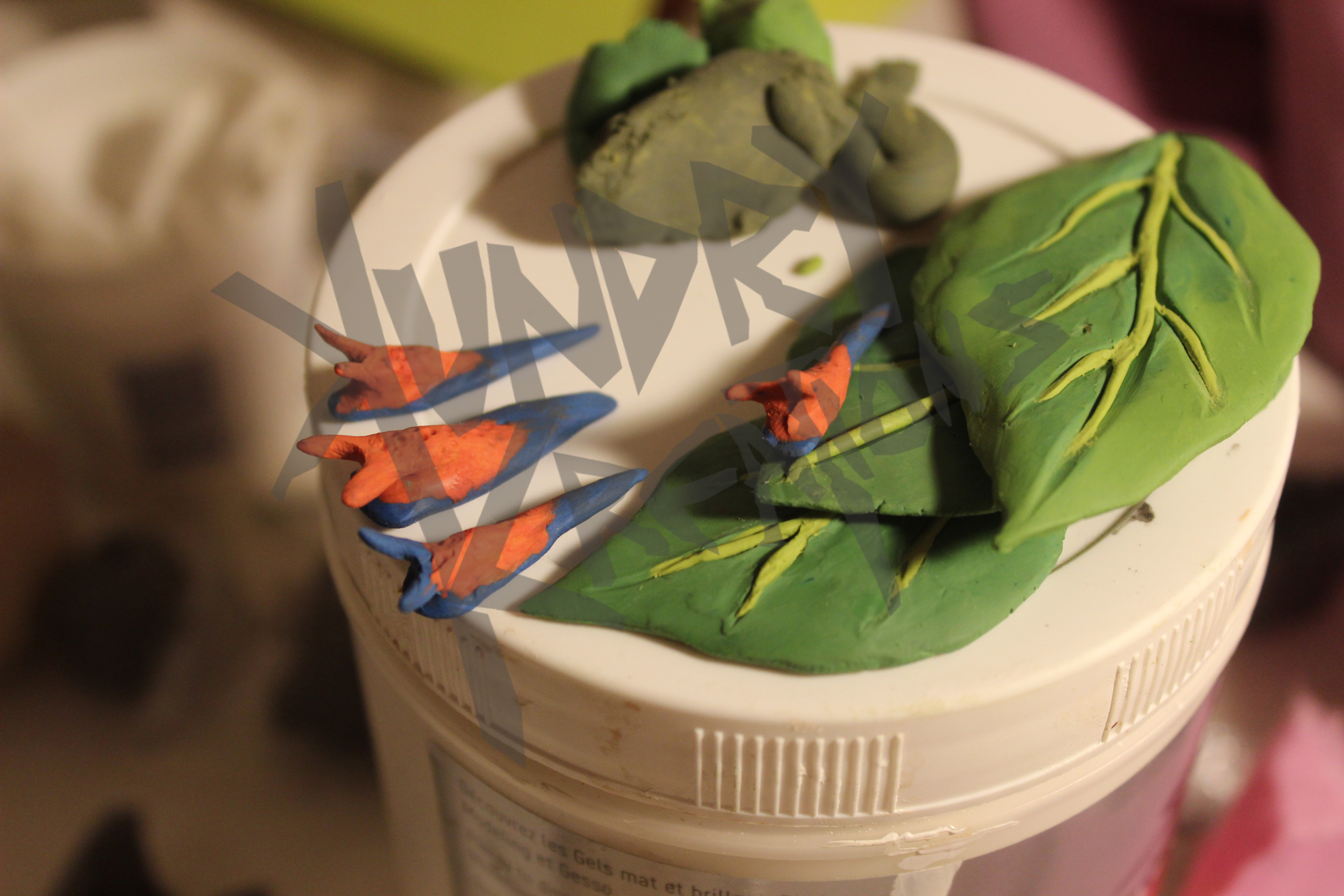 limaces et feuilles, détails en pâte à modeler